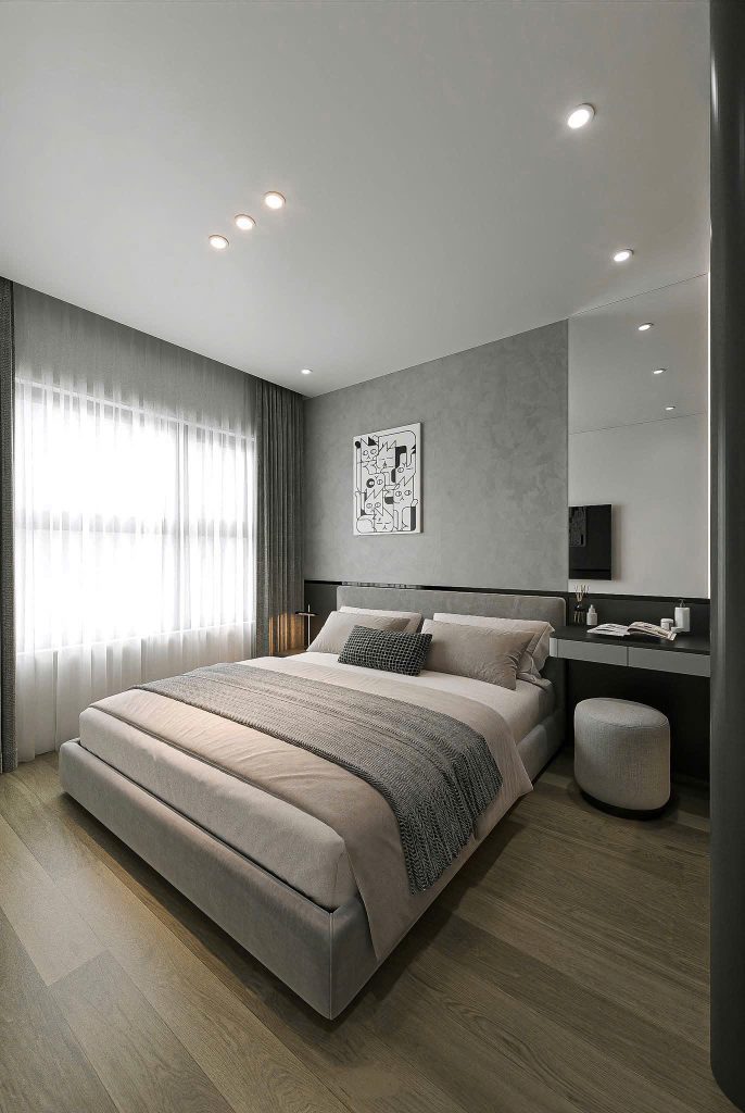 - Thiết kế hiện đại, đường nét tinh giản với gam màu xám trầm chủ đạo, mang đến cảm giác ấm áp và sang trọng.